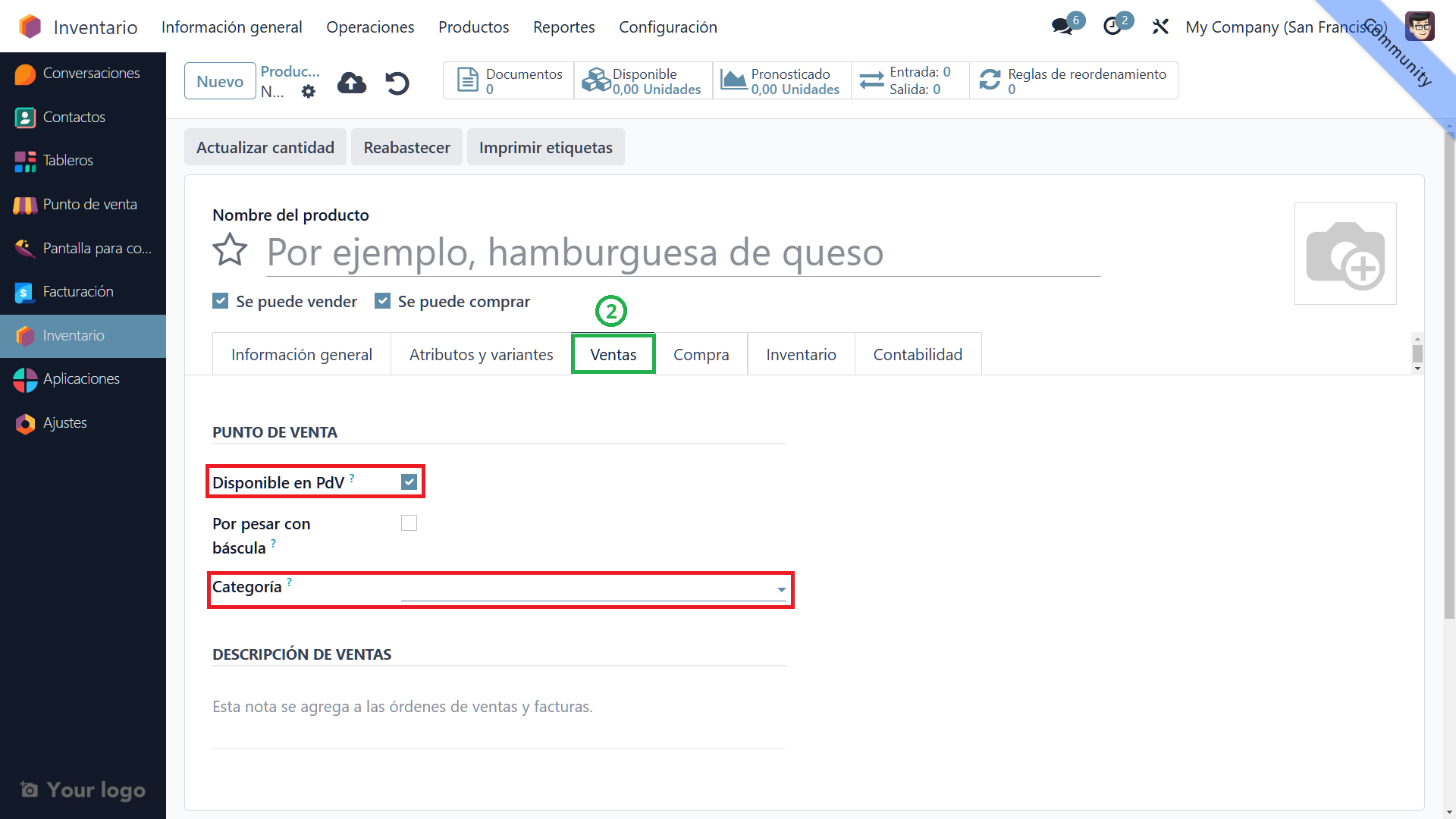 - Categoría del Punto de Venta: Asigna una categoría específica para el punto de venta. Es primordial agregar esta categoria para poder visualizar el producto en cuestion