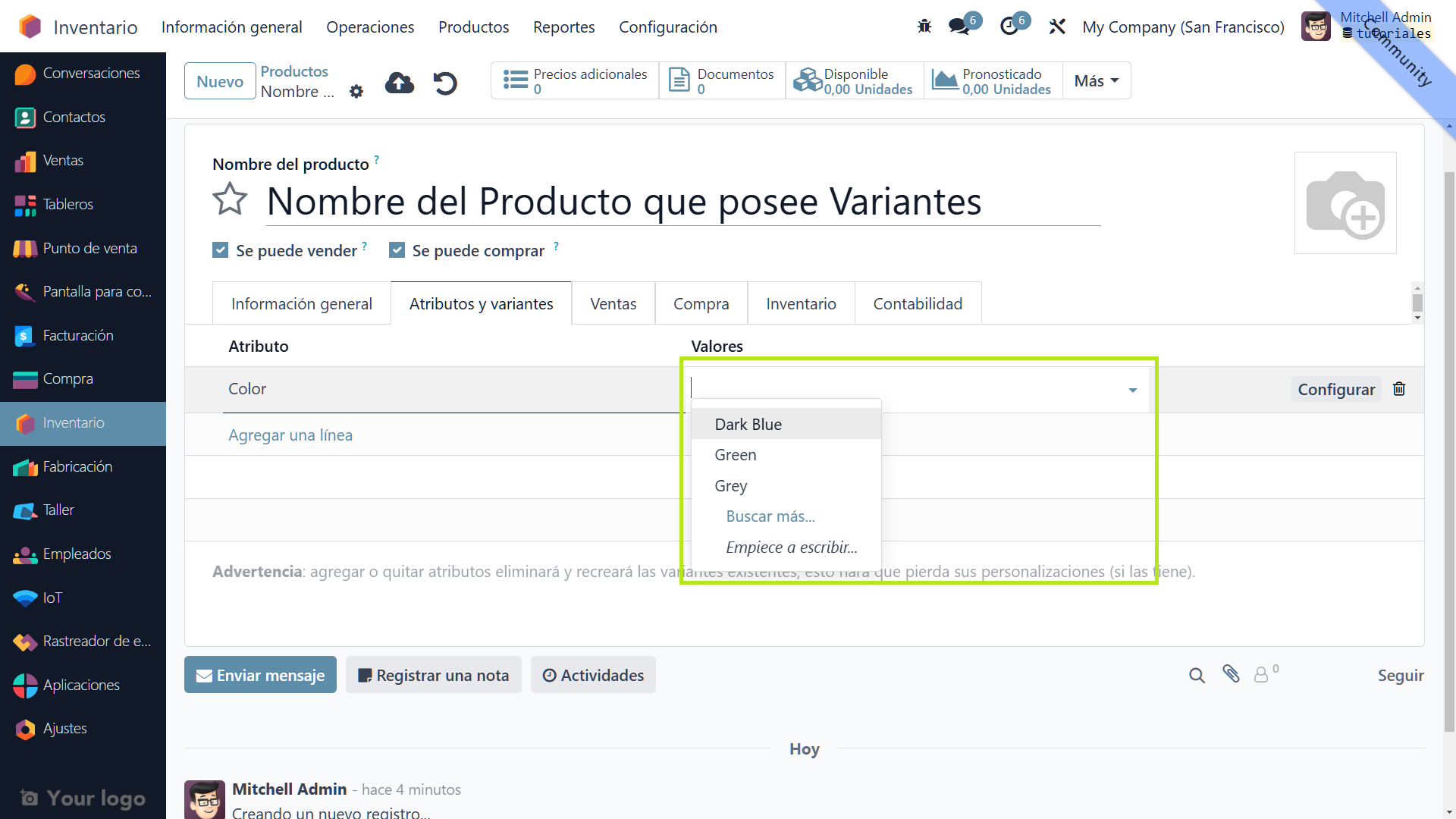 En este tutorial, aprenderemos cómo crear un producto con variantes en Odoo 17. Los productos con variantes son útiles cuando se tienen múltiples versiones de un producto, como diferentes tamaños, colores o estilos. Este proceso te permitirá gestionar eficientemente estos productos y sus respectivas variantes en tu inventario.