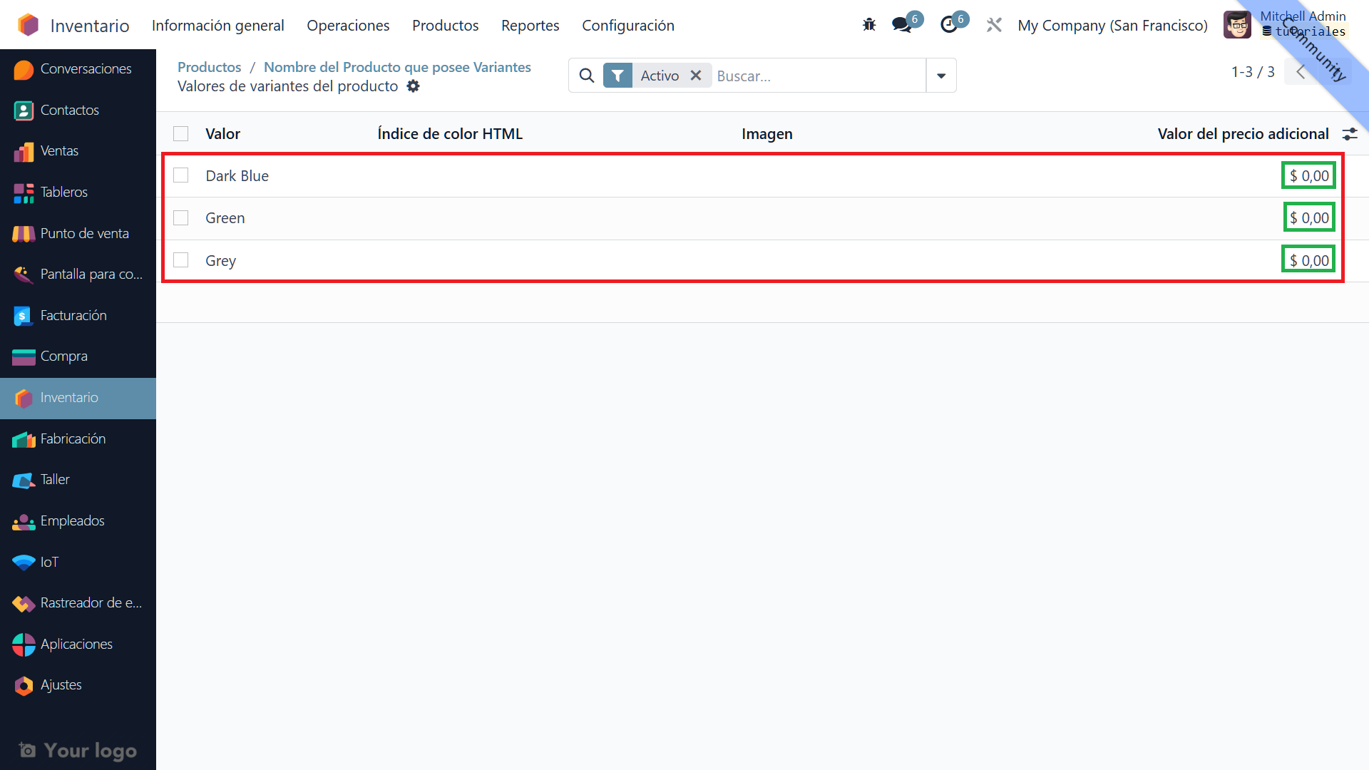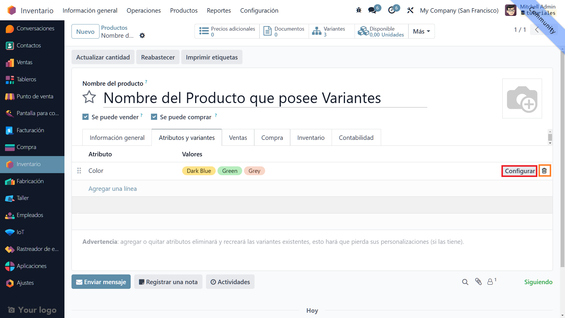 ¡Y eso es todo! Has creado con éxito un producto con variantes en Odoo 17.