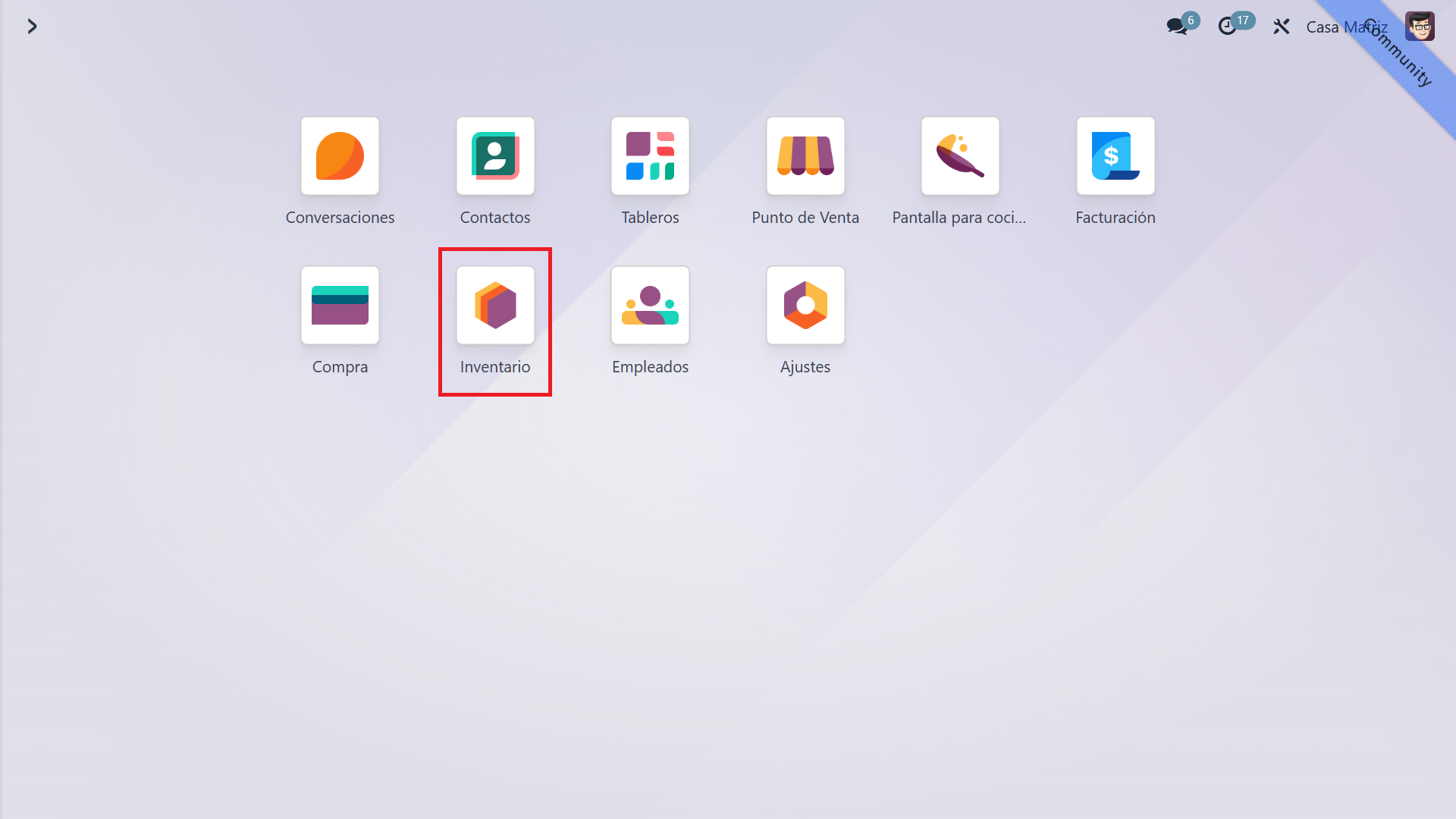 En el menú principal de Odoo, selecciona el módulo "Inventario".