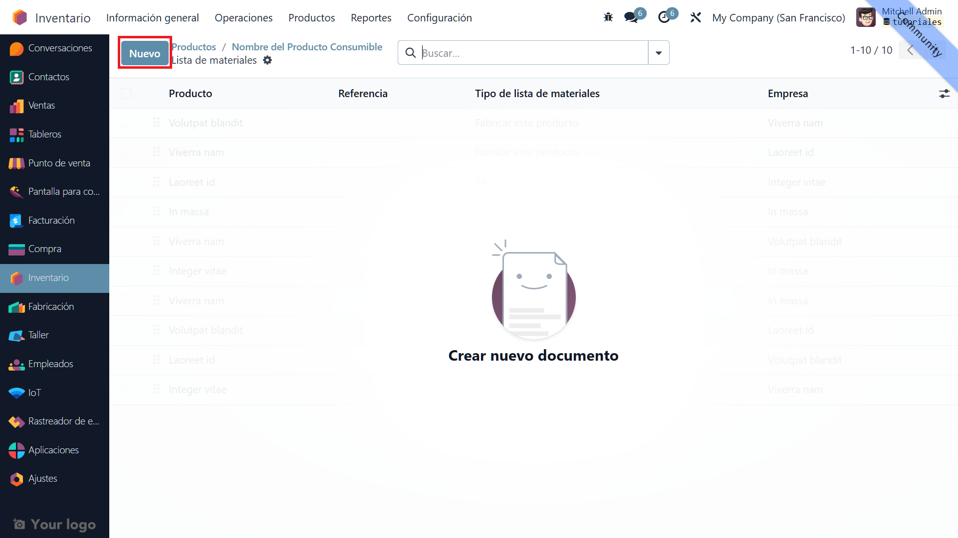 Accede a la sección "Lista de Materiales" (LDM) para especificar los componentes necesarios para fabricar este producto. y oprime en el boton "Nuevo"