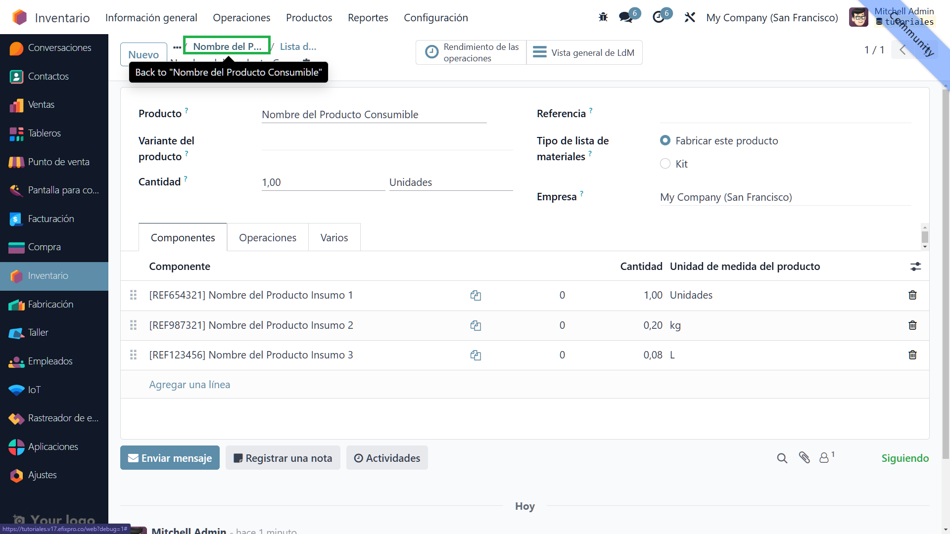En este tutorial, aprenderemos cómo crear un producto consumible para restaurantes en Odoo 17. Los productos consumibles son esenciales para la gestión de inventarios en el sector de la restauración, ya que se utilizan y se reponen constantemente. Sigue los pasos a continuación para crear y configurar un producto consumible en Odoo 17.